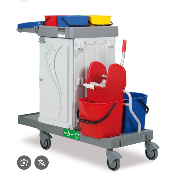 Chariot nettoyage STF 2+4 sans presse, compartiment rangement fermé