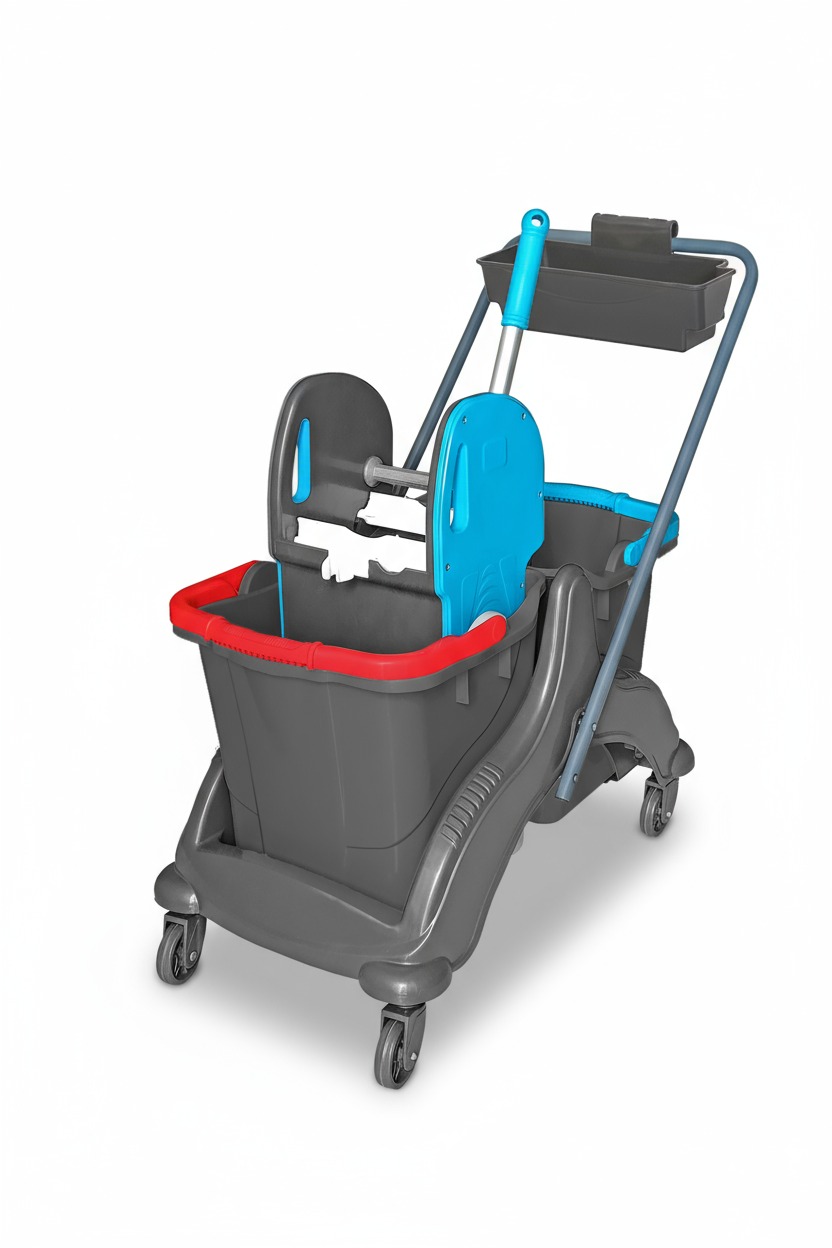 Kit de nettoyage à double seau, conçu pour séparer l’eau propre de l’eau sale, assurant une hygiène optimale.