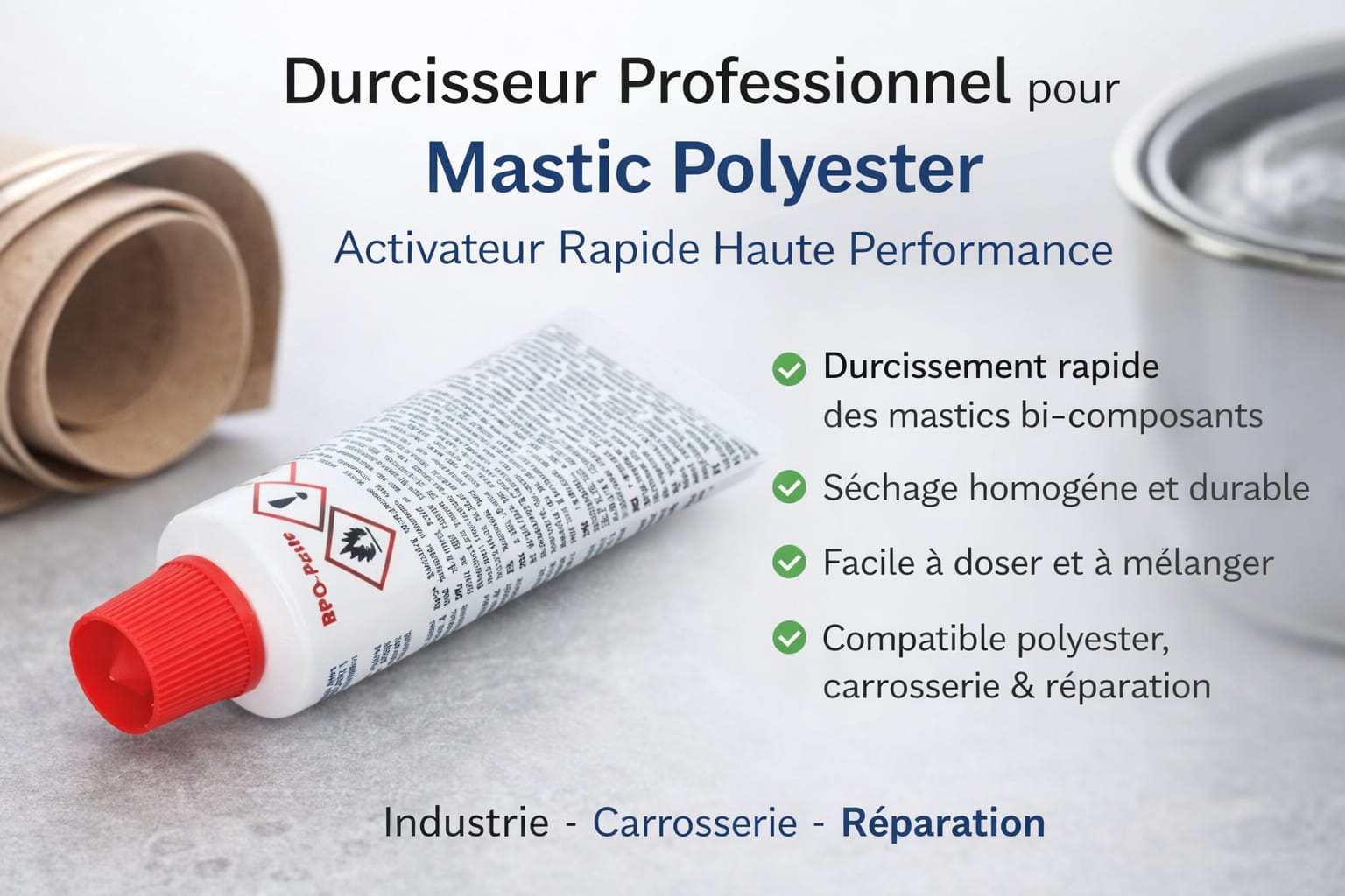 Le tube durcisseur pour mastic est un composant essentiel permettant l’activation des mastics bi-composants.