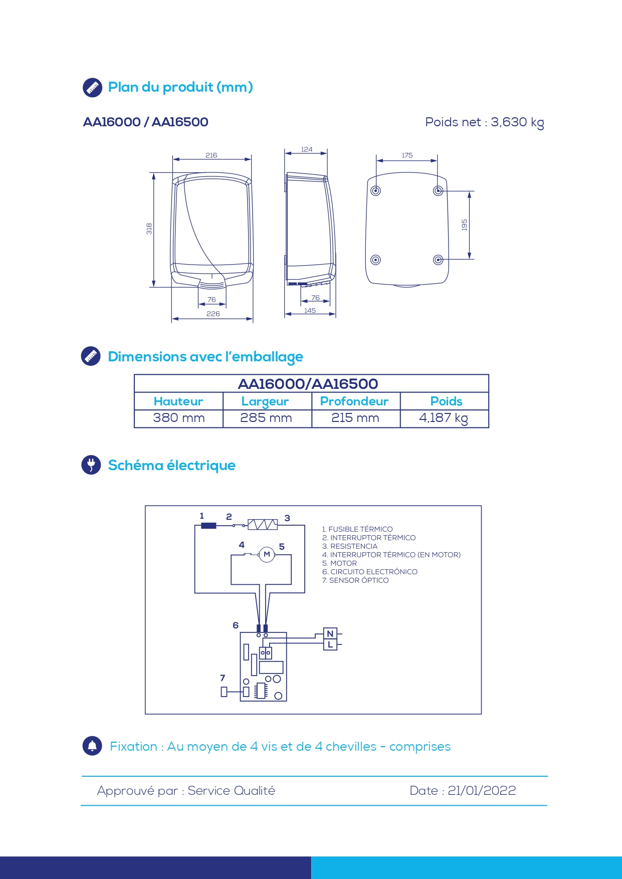 Boîtier en acier inoxydable AISI 304 satiné , système de sécurité avec minuterie intégrée et protection IP21.