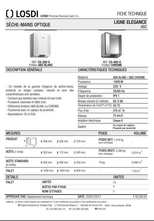Sèche mains optique ABS Blanc CS-200-X LOSDI – Nouveau